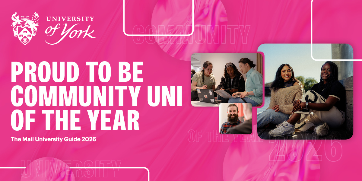The University of York is a community of learning and enquiry. As a student, you join this community to pursue your academic interests and develop as an individual. You will be challenged intellectually, encouraged to consider your place in society, and supported to achieve and to thrive. As staff members and researchers, we'll help you to think deeply, to explore ideas and experiences adventurously and to find your purpose in the world today.