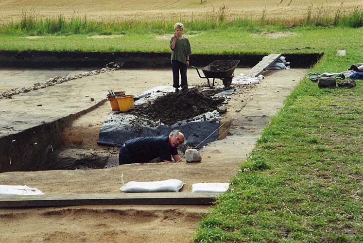 On one particularly overcast, warm and windless day the midges descended and proceeded to attack. For Martin, in typical military strategist fashion, the decision that his best defence would be to dig in his T-shirt vest and wrap his shirt around his head Ali Baba-style was quickly taken. To complete his turbaned look Martin added unpredictable slapping of his remaining exposed flesh accompanied by some muttering. This resulted in reddened skin marked with the small black corpses of many midges. That same morning a large coach party visited the museum and having seen the exhibition two tourists came to have a look at the dig. A well-boned man and his (nearly identical) mother, having established that Martin was our leader, shouted across the fence in a broad Bradford accent: "What've you found that's good?" Needless to say Martin initially feigned deafness - his shirt-turban must have been playing with his hearing. When the Bradfordians persisted by shouting "Have you found any gold or swords?" Martin, who could resist no longer, popped his head above the trench and replied in all seriousness: "No, they're further down". Naturally enough the tourists were totally satisfied with his response and happily boarded their coach.It seems only fitting to finish the contribution with some poetry - Martin always manages to effortlessly blend his writing with some appropriate poetry and I've attempted to do the same for old time's sake wi' a bit o Rabbie (my translation in brackets in the spirit of Tarbat):