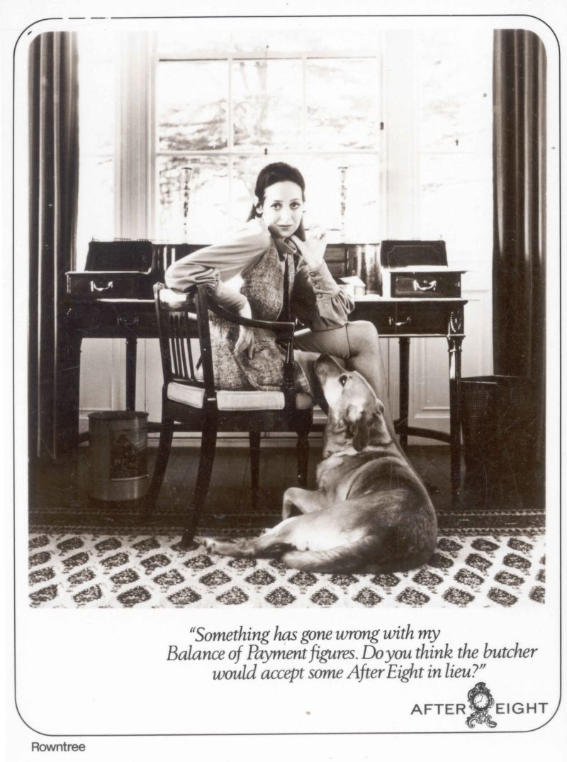 Still in the 1960s however, After Eight mints were now being sold as bought by those of a higher social class – the adverts depict dinner parties, expensive cars and well dressed women. These women fare no better than those in the 1950s black magic adverts however. They are shown as unable to manage accounts – 'will the butcher take After Eights in lieu of payment?' asks one woman whose books won't balance and also, with a reference to contemporary political issues, as unable to understand the common market and only concerned about how it may affect their chocolate buying.
