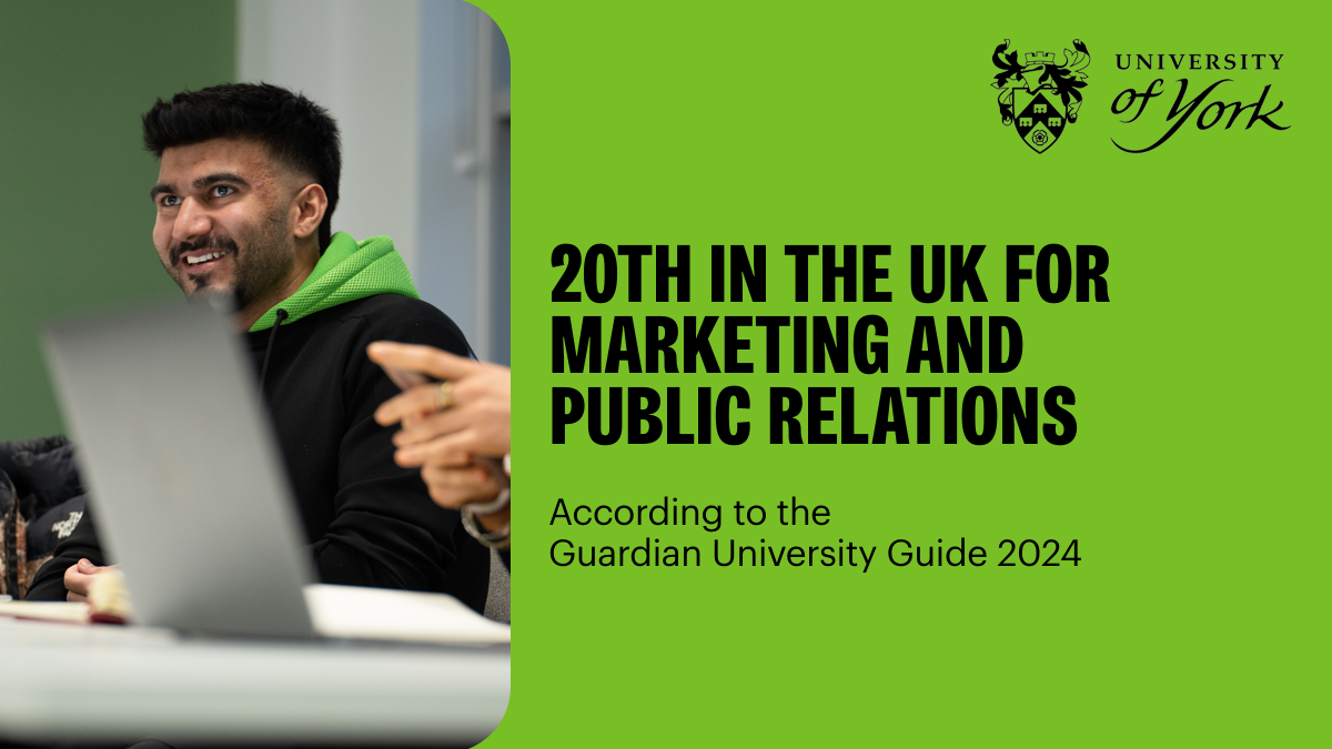 Marketing at York ranks 20th in Guardian University Guide 2024