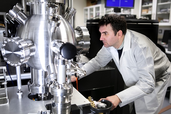 One of our researchers growing novel multiferroic materials using pulsed laser deposition.