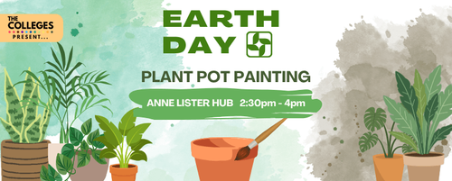 Looking for a mindful way to mark Earth Day? Come along to Plant Pot Painting in the Anne Lister Hub on Tuesday 21 April, 14:30–16:00. Design your own plant pot, unwind with a creative activity, and take home something unique!