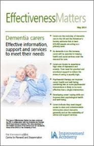 This issue of Effectiveness Matters summarises the evidence about ways of providing information, support and services to meet the needs of carers for people with dementia. The bulletin is based mainly on existing sources of synthesised and quality-assessed evidence, and aims to complement recent scoping work undertaken by the Yorkshire and Humber AHSN Improvement Academy.5