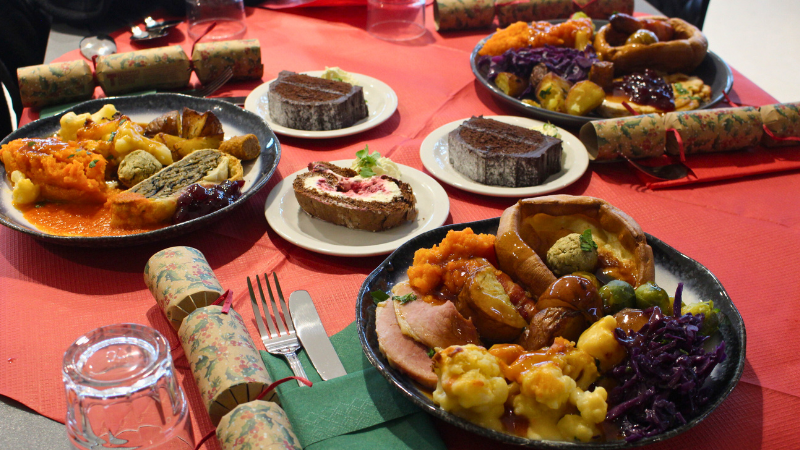 Get into the festive spirit with a traditional Christmas dinner served across campus on Monday 8 December, available from 5.30pm to 7.15pm.