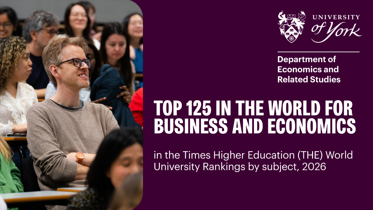 On this ranking Professor Michael Thornton, Head of Department of Economics and Related studies said: “I am delighted to see the University of York's strengths in the area of Business and Economics retain its recognition in the THE World Rankings. We are proud of our global outlook, high-quality research and diverse teaching expertise, which complements the vibrant, international perspective of our student community.”
