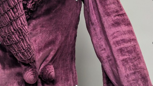 Burgundy Velvet Coat, label ‘Marshall & Snelgove’, in silk velvet; satin lining of unknown material, steel hooks and eyes, from the late 1920’s. Credit: DMDA Fashion Collection, University of York.