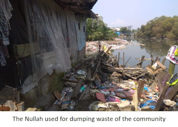 An open-drain marks the boundary of the neighbourhood. It is literally a dumping ground where people of the neighbourhood feel free to dump their waste.